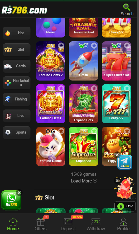 RS786 supports instant deposit methods, making it convenient for players to add balance and start gaming instantly.
